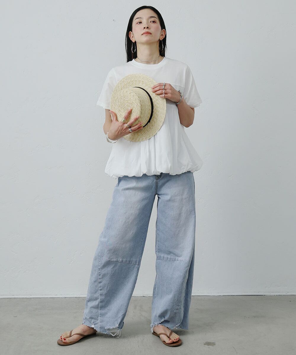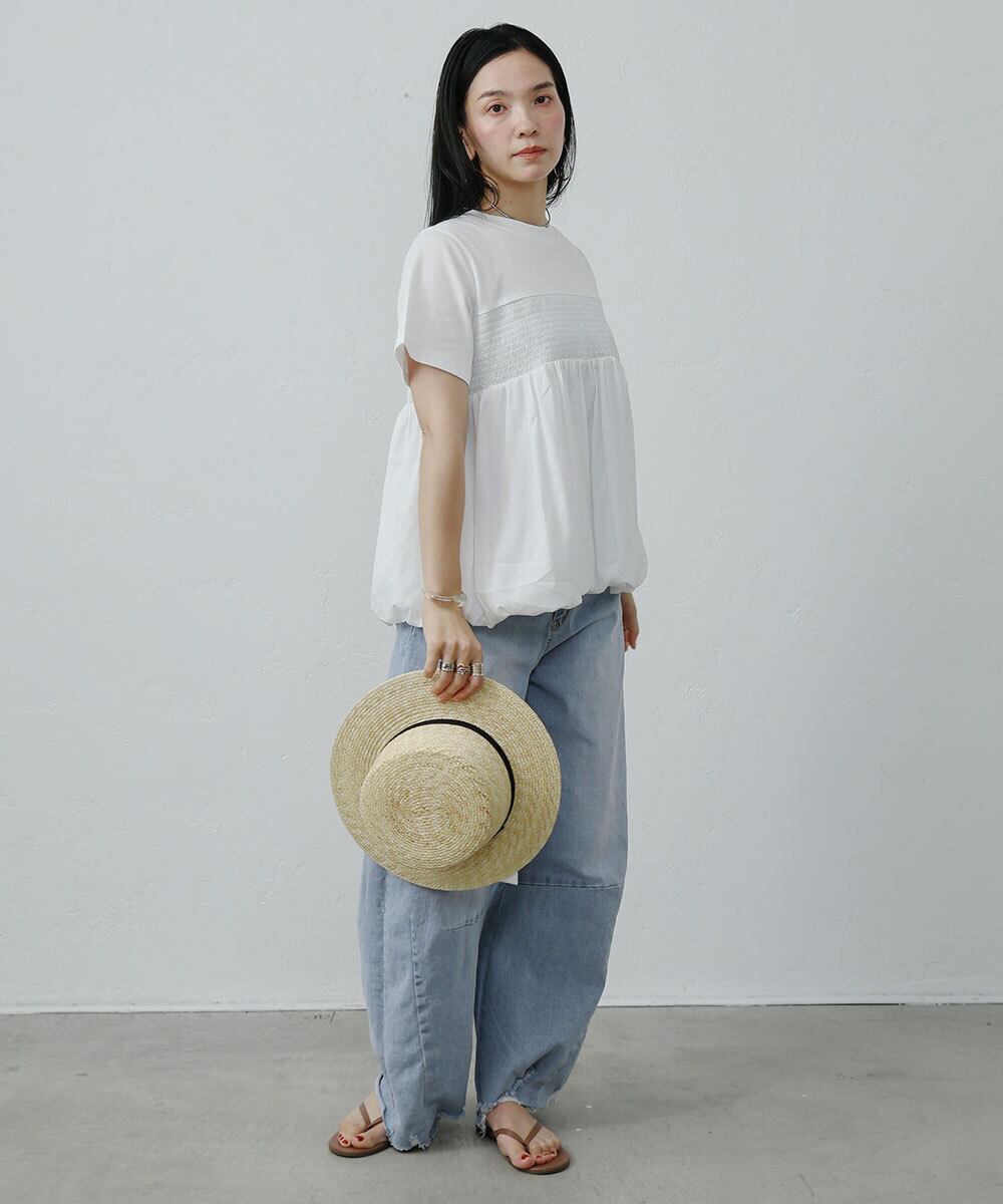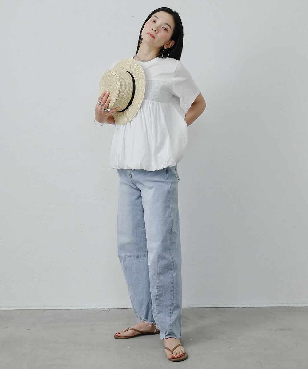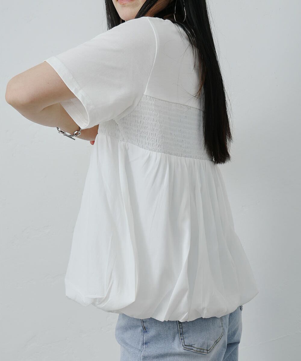 シャーリングペプラムトップス